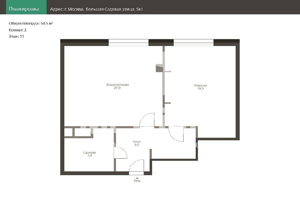 Общая: 64,5 м2